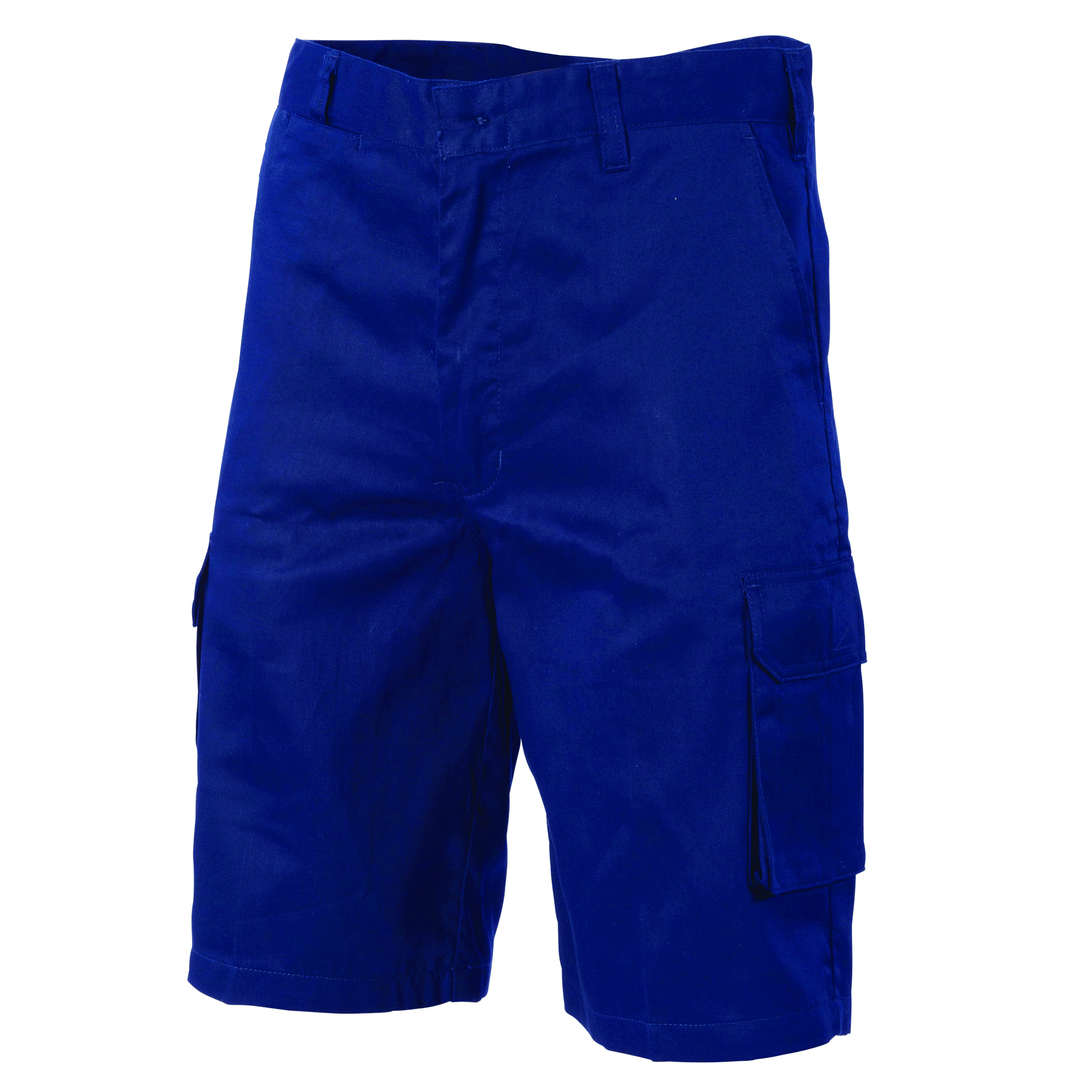 190gsm lightweight cotton drill. One large flap pocket on right side lower leg, tool and mobile phone pockets on other side. Nylon zipper and plastic button